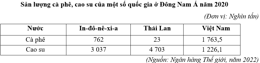 | a) Sản lượng cà phê của Việt Nam cao hơn Thái Lan. | ||