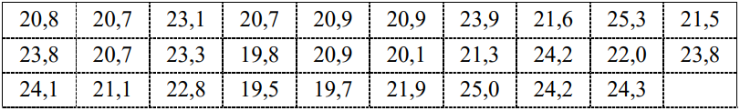 $\lbrack 19,5;20,5)$; $\lbrack 20,5;21,5)$; $\lbrack 21,5;22,5)$; $\lbrack 22,5;23,5)$; $\lbrack 23,5;24,5)$; $[24,5 ; 25,5]$.