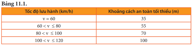 Khoảng cách nào là khoảng cách an toàn theo Bảng 11.1 đối với xe ô