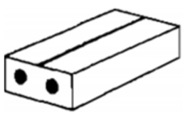 Một hòn gạch “hai lỗ” (hình vẽ) có khối lượng 1,6kg. Hòn gạch có thể tích \(1200\,\,c{{m}^{3}}\). Mỗi lỗ có thể tích \(192\,\,c{{m}^{3}}\). Khối lượng riêng của gạch là bao nhiêu \(kg/{m^3}\)?