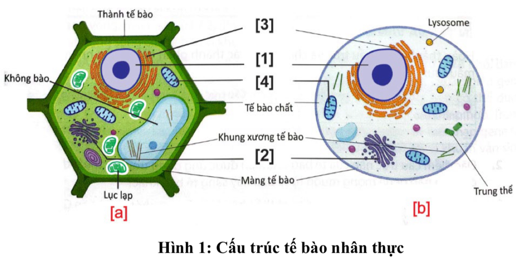 Hình 1 mô tả cấu trúc tế bào nhân thực. Mỗi nhận định sau đây là Đúng hay Sai về hình