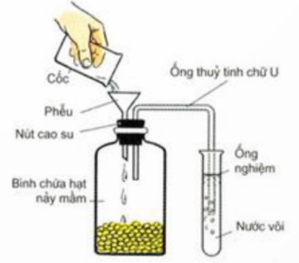 - Nguyên lý: Hạt nảy mầm hô hấp hiếu khí → giải phóng CO₂ → dẫn khí qua nước vôi trong → vôi kết tủa trắng chứng tỏ có CO₂ sinh ra.