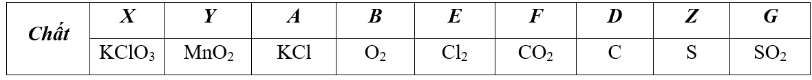 Biết (B), (E), (F),(G) là các chất khí ở điều kiện thường, tỷ khối hơi của (F) so với (G) bằng 0,6875; (X), (A), (Y), (D), (Z) là các chất rắn; (D) và (Z) là các đơn chất.