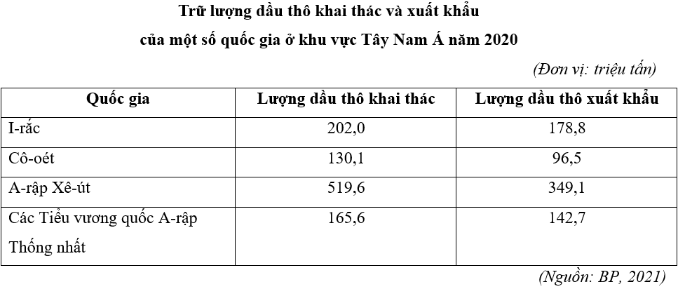 Cho bảng số liệu sau: Căn cứ vào bảng số liệu trên, hãy cho biết quốc gia nào tiêu thụ