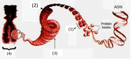 Quan sát hình sau về các mức cấu trúc của nhiễm sắc thể ở tế bào nhân thực. Kí hiệu số (2) có tên gọi là gì?