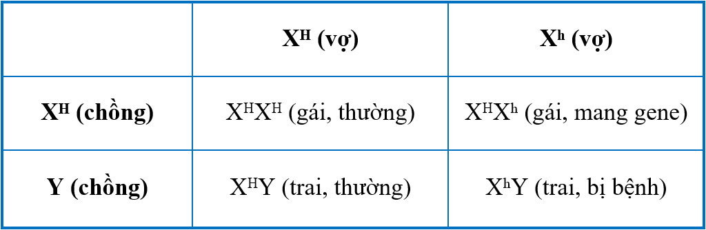 → Chị Linh nhận Xʰ từ bố, Xᴴ từ mẹ → XᴴXʰ → mang gene bệnh