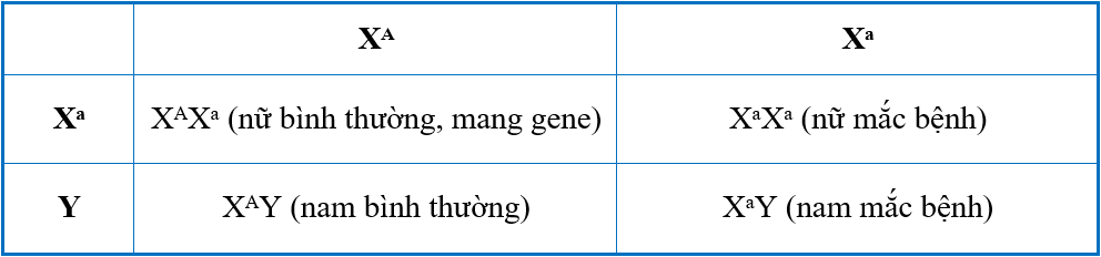 - Bệnh mù màu do gene lặn (Xᵃ) nằm trên NST giới tính X quy định.