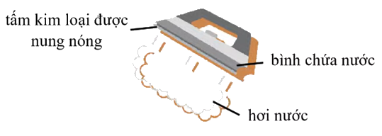 Hình bên mô tả một chiếc bàn là hơi nước. Nước từ một bình chứa nhỏ giọt vào một tấm