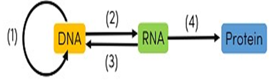 Cho sơ đồ thể hiện quá trình truyền đạt thông tin di truyền như sau. Vị trí số mấy trong sơ đồ thể hiện quá trình phiên mã ngược?