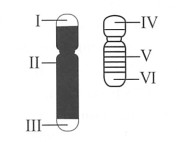 Các vùng trên mỗi nhiễm sắc thể của cặp nhiễm sắc thể giới tính XY ở người được ký hiệu bằng các chữ số La Mã từ 1 đến VI trong hình bên. Trong cặp nhiễm sắc thể giới tính này, vùng tương đồng giữa nhiễm sắc thể X và nhiễm sắc thể Y gồm các vùng nào sau đây?