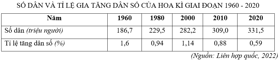 | a) Số dân Hoa Kì liên tục tăng ở giai đoạn 1960 - 2020. | ||