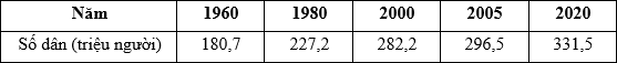 Cho bảng số liệu sau:Số dân của Hoa Kỳ giai đoạn 1960 – 2020a) Nhận xét về số dân của Hoa