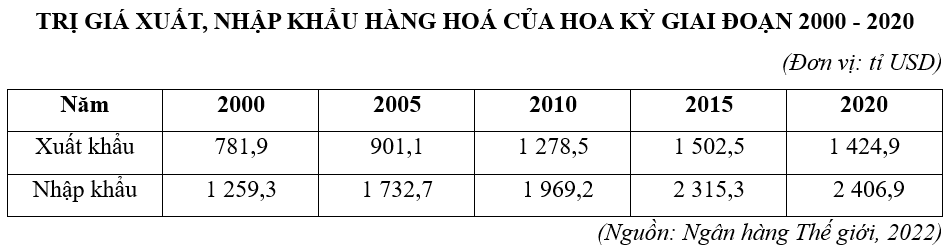 Cho bảng số liệu sau:Căn cứ vào bảng số liệu trên, hãy cho biết cán cân thương mại của Hoa