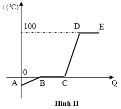 Hình II là đồ thị minh họa sự thay đổi nhiệt độ của nước theo nhiệt lượng cung cấp trong
