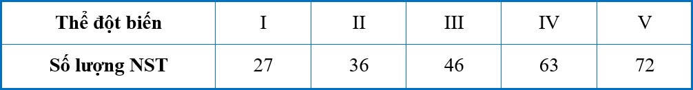 Một loài thực vật có 9 nhóm gene liên kết. Khi khảo sát một quần thể lớn của loài này, người ta đã tìm ra 5 thể đột biến ký hiệu lần lượt là I, II, III, IV và V. Các thể đột biến này có số lượng NST trong tế bào mô phân sinh đỉnh như sau: