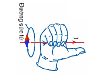 Quy tắc nắm bàn tay phải: Giơ ngón cái của bàn tay phải theo chiều dòng điện, khum bốn ngón tay kia xung quanh dây dẫn thì chiều từ cổ tay đến bốn ngón tay đó là chiều của đường sức từ.