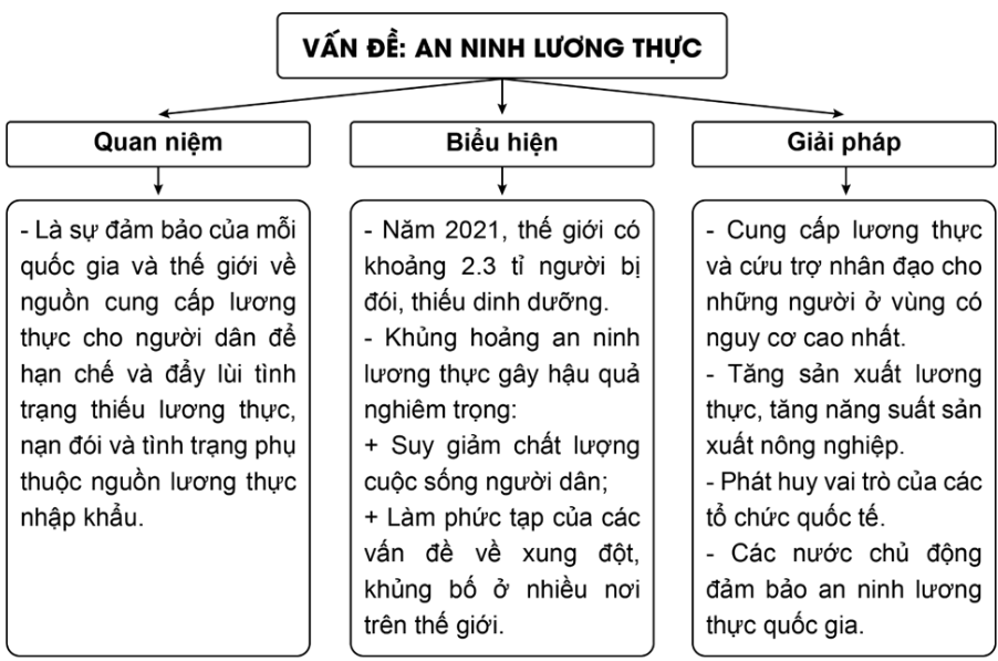 Dựa vào nội dung an ninh toàn cầu và bảo vệ hòa bình trên thế giới (phần an ninh lương thực) và trình bày về: