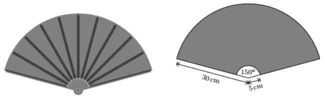 1) Một chiếc quạt giấy khi mở hết mức ra có góc ở tâm là $150^{0}$, bán kính chiếc quạt 30 cm