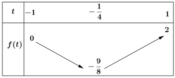 | c) Đặt $t = \cos x$ thì hàm số trở thành $y = f(x) = 2t^{2} + t - 1$. | ||
