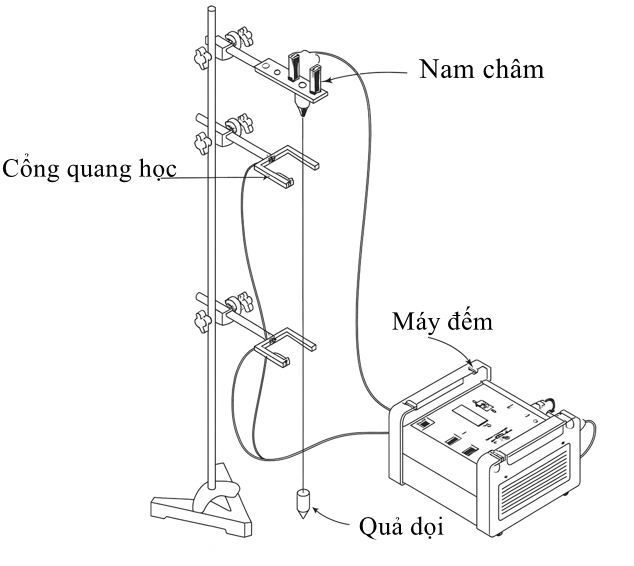 Để tính toán gia tốc rơi tự do tại một địa điểm trên Trái Đất, một nhóm học sinh thực hiện thí nghiệm mô tả như sau: