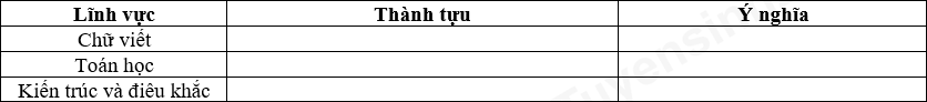 Lập bảng tìm hiểu thành tựu tiêu biểu của nền văn minh Ai Cập thời cổ đại theo gợi ý: