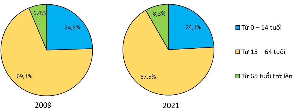 b) Dựa vào tỉ trọng nhóm 15 - 64 tuổi của năm 2009 và năm 2021.