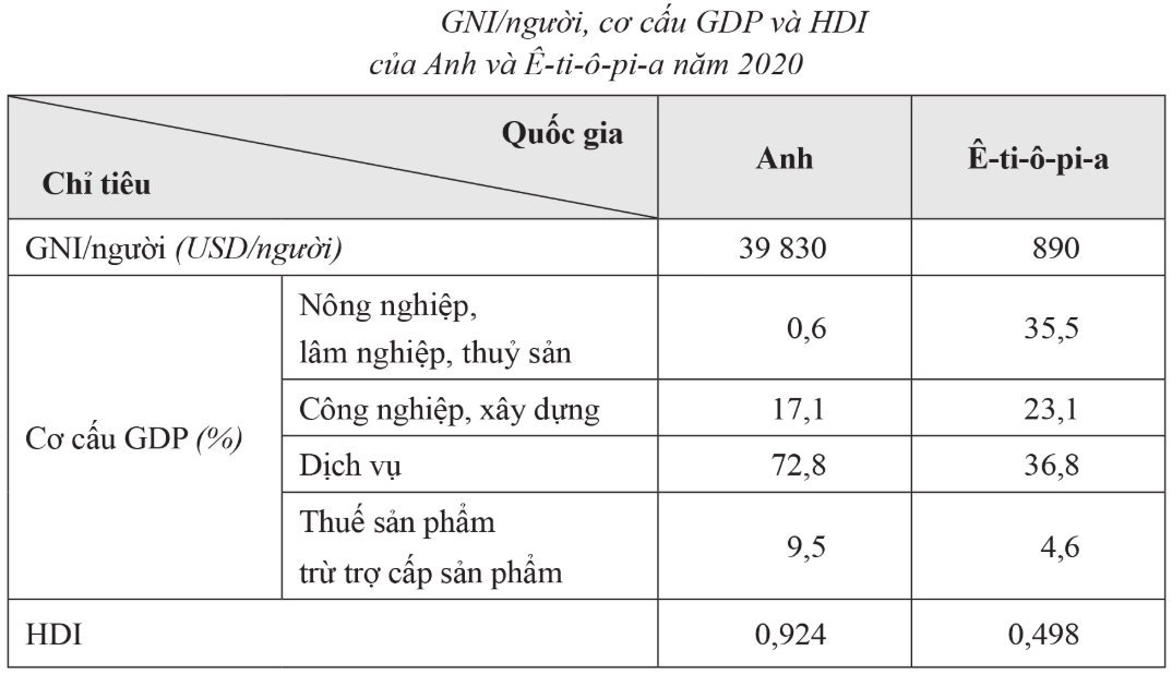 Dựa vào bảng số liệu và nội dung sự khác biệt về kinh tế - xã hội của các nhóm nước.