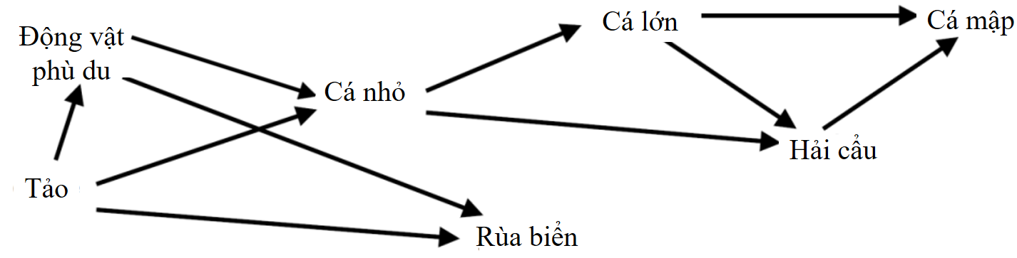 Hình sau là lưới thức ăn ở một hệ sinh thái biển.