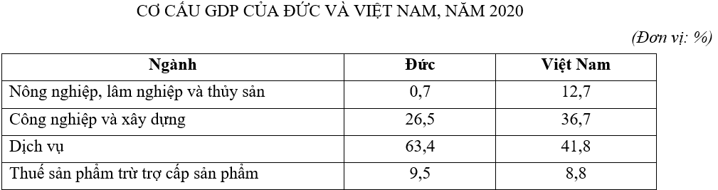 | a) Đức có ngành dịch vụ chiếm tỉ trọng rất lớn, cao hơn Việt Nam 21,6%. | ||