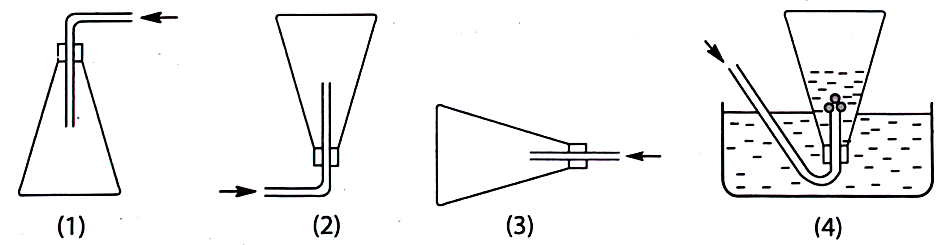 Cho sơ đồ thu khí ammonia bằng cách đẩy không khí (1); (2); (3) và đẩy nước (4):Khí ammonia thu