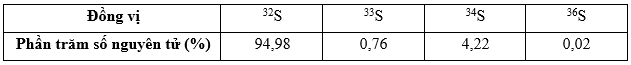 Tính nguyên tử khối trung bình của sulfur dựa theo thành phần các đồng vị cho trong bảng sau. (Làm tròn kết quả tới hàng phần mười).