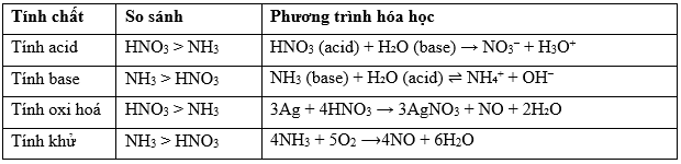 So sánh các tính chất sau giữa phân tử NH3 và phân tử HNO3
