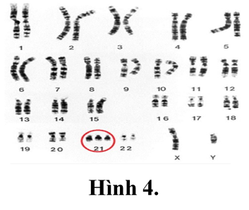 Quan sát hình ta thấy nhiễm sắc thể số 21 có 3 chiếc