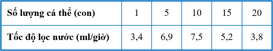 Khả năng lọc nước của loài thân mềm (Sphaerium corneum) thay đổi theo số lượng cá thể trong nhóm được mô tả trong bảng.