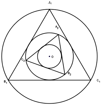 Chứng minh các tam giác $A_{1}B_{1}C_{1},A_{2}B_{2}C_{2},\ldots$ có độ dài các cạnh tạo thành cấp số nhân với công bội $q_{c} = \dfrac{1}{2}$.