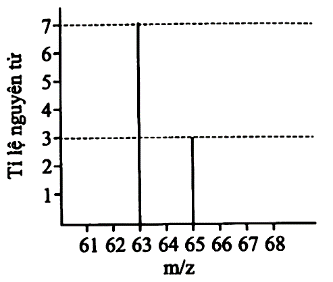Từ phổ khối lượng các đồng vị của Cu trong tự nhiên ở hình bên. Cho biết giá trị nguyên