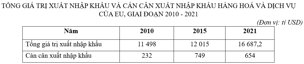 Cho bảng số liệu: Căn cứ vào bảng số liệu trên, hãy cho biết giá trị nhập khẩu của EU năm