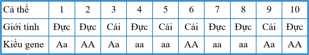 Các nhà khoa học đã phát hiện một quần thể thằn lằn đuôi cong mới được thành lập trên một hòn đảo bởi những cá thể thằn lằn nhập cư đến từ những quần thể khác nhau trong một cơn bão. Họ thu thập và lập bảng dữ liệu về kiểu gene đối với gene mã hóa enzyme lactate dehydrogenase (Ldh) của từng cá thể thằn lằn.