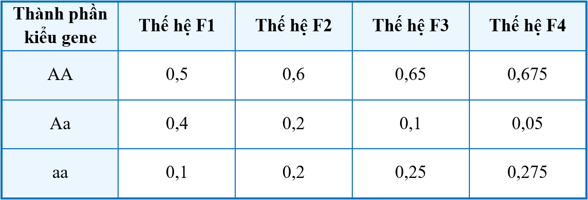Nghiên cứu sự thay đổi thành phần kiểu gene ở một quần thể qua 4 thế hệ liên tiếp, người