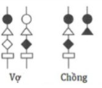 Hình bên mô tả cặp nhiễm sắc thể giới tính ở một cặp vợ chồng, các kí hiệu hình học