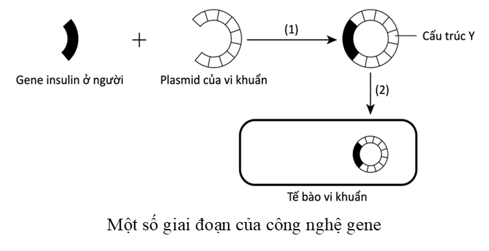 Hình bên mô tả hai giai đoạn (được chú thích bằng chữ số 1 và 2) trong một quy trình của công nghệ gene.
