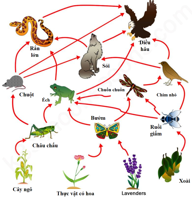 Hình bên mô tả một lưới thức ăn thể hiện mối quan hệ dinh dưỡng trong một hệ sinh thái