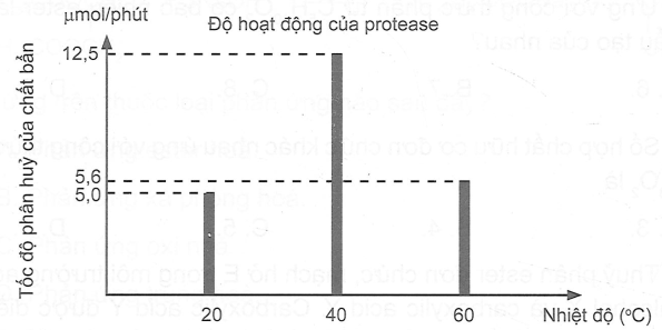 Để khoả sát độ hoạt động của protease theo nhiệt độ, người ta tiến hành thí nghiệm nghiên cứu tốc độ phân huỷ chất bẩn bởi protease. Kết quả cho bởi biểu đồ sau: