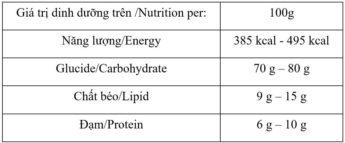 | d) 100 gam lương khô X cung cấp năng lượng tử 280 - 320 kcal. |