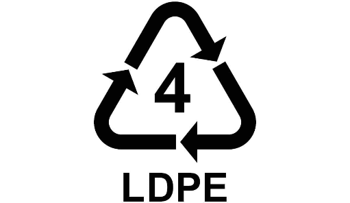 LDPE là một chất dèo dễ tạo màng, có tính dai bền nên được sử dụng làm túi nylon, màng bọc, bao gói thực phẩm. Trên các bao bì làm từ LDPE thường được in kí hiệu như hình bên.