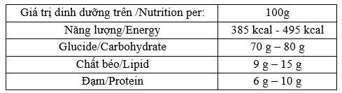 Dựa vào bảng thông tin về thành phần dinh dưỡng trong lương khô X.