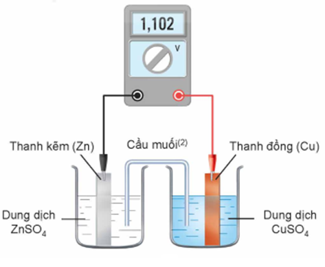 Một pin điện hoá Zn - Cu được thiết lập ở các điều kiện như hình vẽ sau (vôn kế có điện trở rất lớn).
