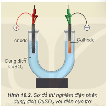 Điện phân dung dịch CuSO4 với cathode làm bằng than chì và anode được làm bằng Cu được mô tả qua hình dưới đây: