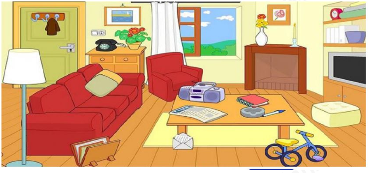 Quan sát xem tấm thảm nằm ở đâu so với bàn.
