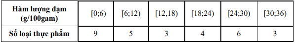 Cô Lan tìm hiểu hàm lượng đạm (protein) trong một số loại thực phẩm phổ biến (trong đó có thịt bò) và thống kê dữ liệu trong bảng sau:
